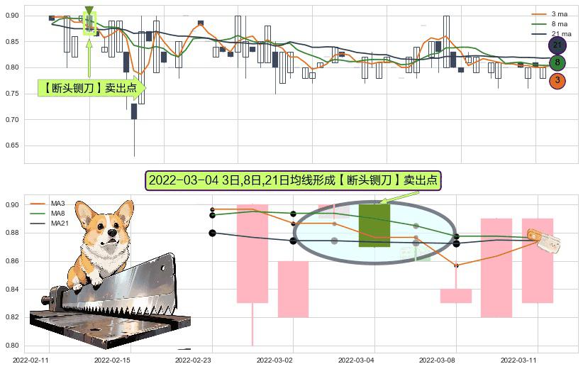 ⚀ 2022-03-04日显现 3日-8日-21日均线 【断头铡刀】卖出点 看空信号,后市看跌,卖出