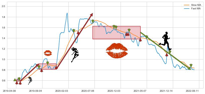 2021-03-30至2022-07-06 慢线与快线呈空头排列, 慢线与快线接触少,无缠绕