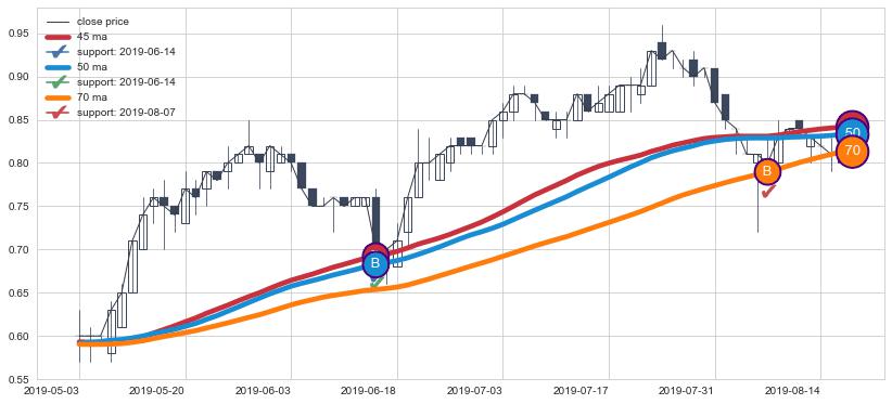 ⚄ 短期均线MA8上穿中期均线MA13形成的交叉是标准 黄金交叉