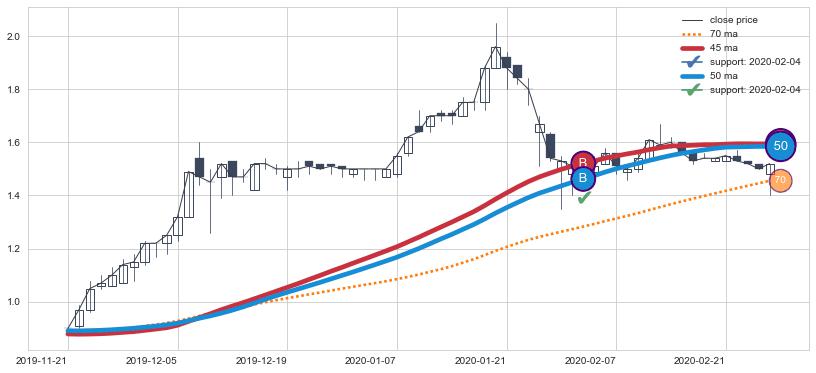 ⚅ 短期均线MA30下穿中期均线MA90形成的交叉是标准 死亡交叉