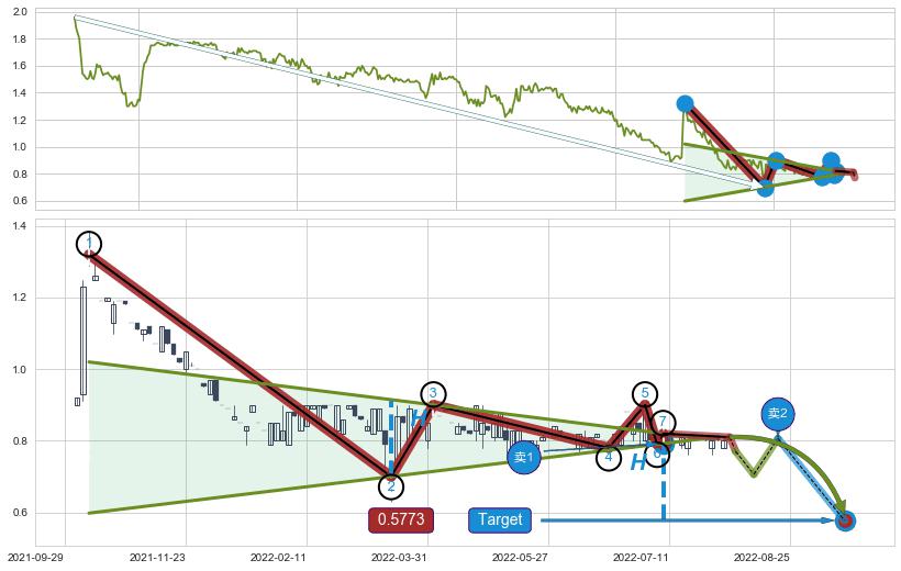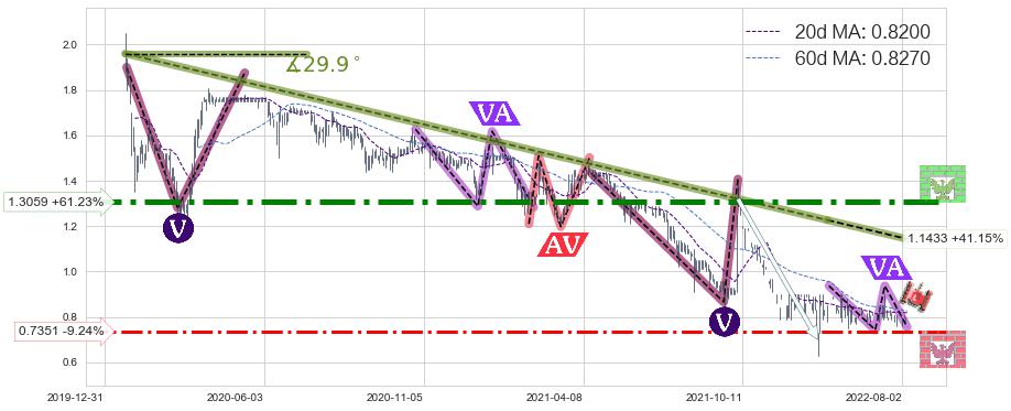➣ 【仅预测突破】最后价格:0.8100与预测突破价格:0.7920→【空间临近】后续最小【整理】第一目标价格→(2022-09-07: 0.5773 )