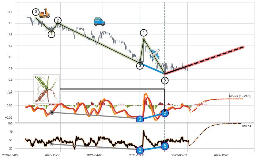 ➣ 第一, 三, 五浪下跌动能逐渐【增强变大】,趋势不断加固