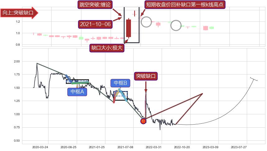 ➢ 突破缺口形成后,后续k已经超过14根,跳空突破缠论买卖点关键点后, 出现【完全回踩】迹象,短期收盘价回补缺口第一根k线高点
