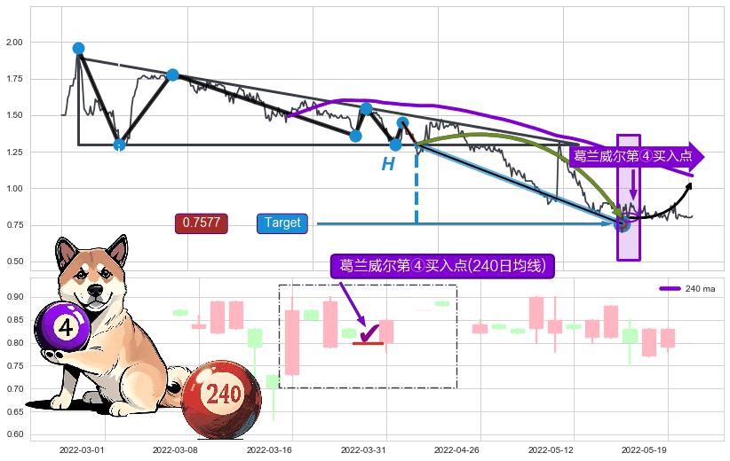 ➢ 收盘价(2022-05-05: 0.8200 )→再次回踩→第一根k线高点(2022-03-31: 0.8500 )