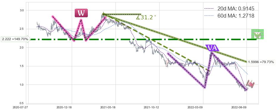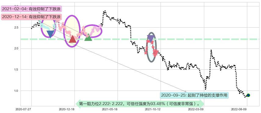 ♘ 阻力价格位2.222,可信任强度93.48%,距离最后交易2022-08-12形成的收盘价格0.8900相差 +149.70%