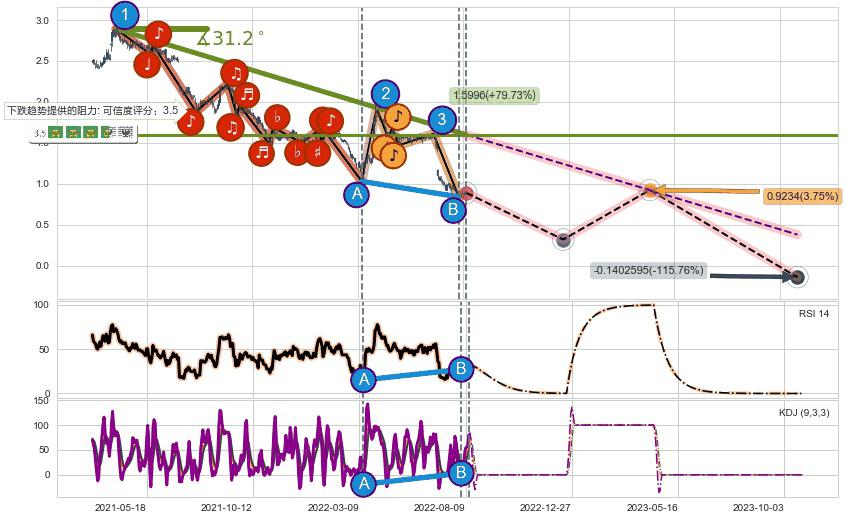 ➢ 预测:2023-10-26,【继续下探】稳定目前下跌趋势的前提下,预测价格:-0.1402595