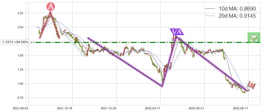 ♘ 阻力价格位1.7273,可信任强度59.66%,距离最后交易2022-08-12形成的收盘价格0.8900相差 +94.08%