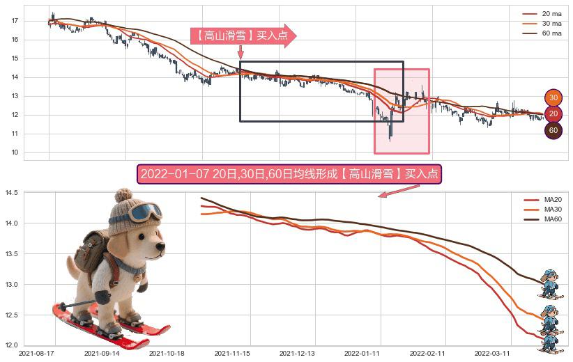 形态多维评估: ⚀ 2021-10-25日-2022-03-25日显现 20日-30日-60日均线 【高山滑雪】买入点 看多信号,后市看涨,买入