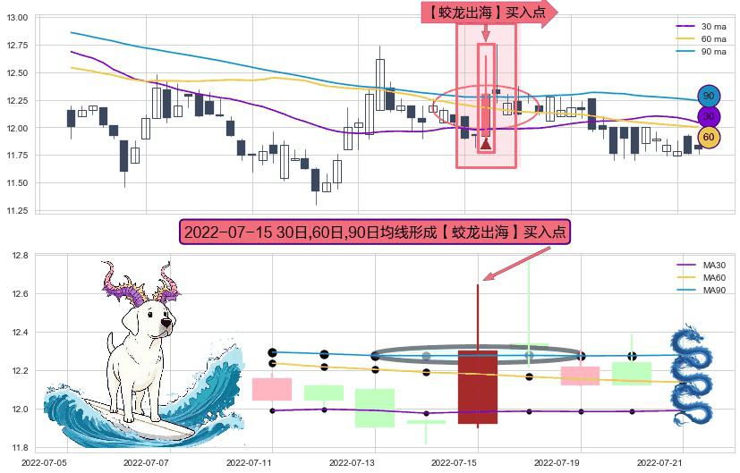 形态多维评估: ⚀ 2022-07-15日显现 30日-60日-90日均线 【蛟龙出海】买入点 看多信号,后市看涨,买入