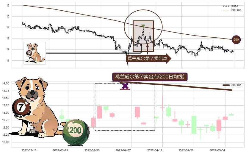 形态多维评估: ⚀ 2022-04-06-日显现 葛兰威尔均线 200日均线 第⑦卖出点 下降趋势的中继信号,后市看跌,卖出信号