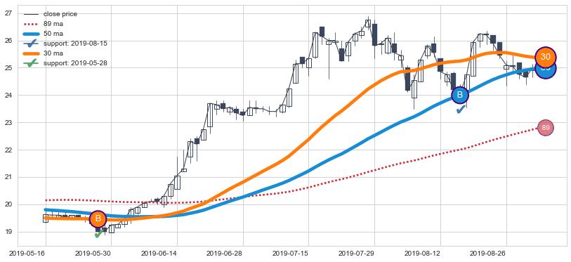 上涨趋势2019-05-16-2019-09-02,均线50, 30确认关键支撑2处