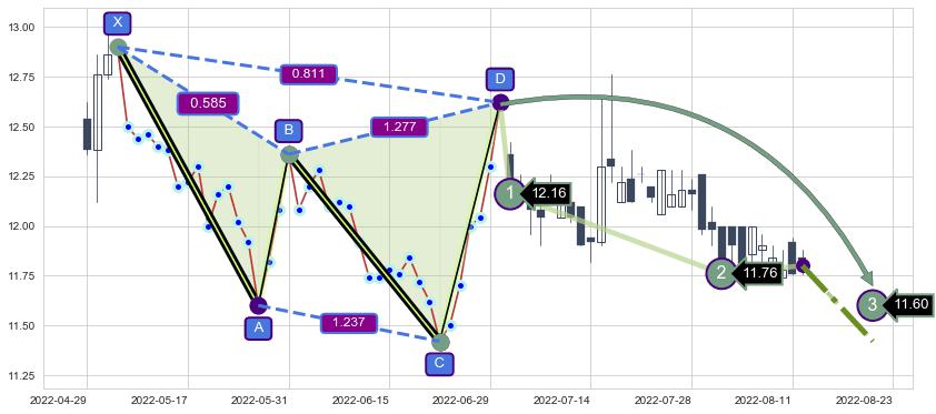 ➢ AI预测: 假定反转继续,第❸价格目标位置(2022-08-23, 11.60)