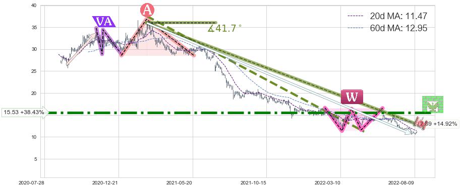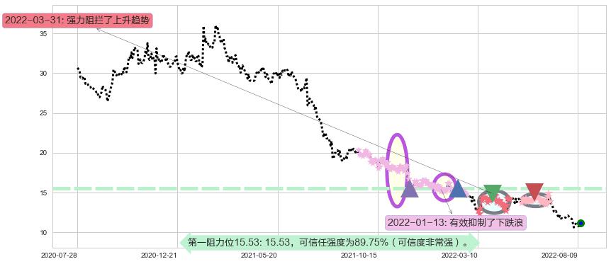 ♘ 阻力价格位15.53,可信任强度89.75%,距离最后交易2022-08-12形成的收盘价格11.22相差 +38.43%