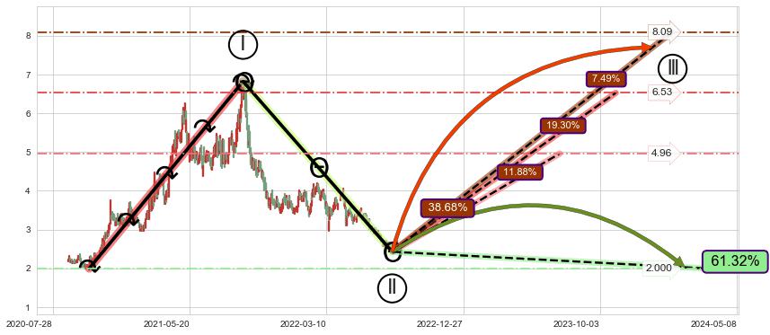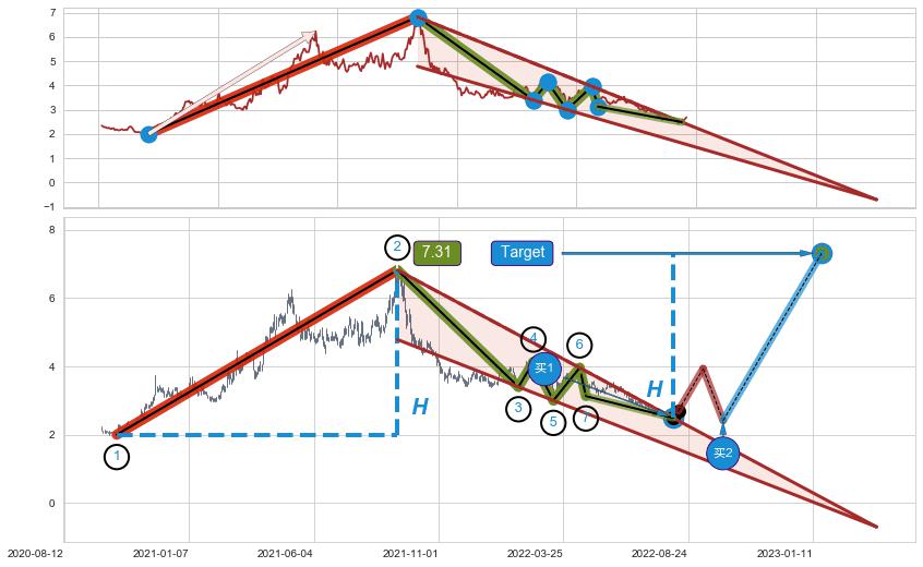 ➢ AI预测: 假定反转如期而至,第❸价格目标位置(2023-03-01, 6.82)