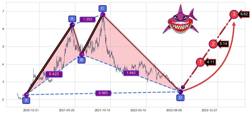 ➣ 已完成【鲨鱼】形态起点X: 2020-10-30, 终点D: 2022-08-03, 共433交易日