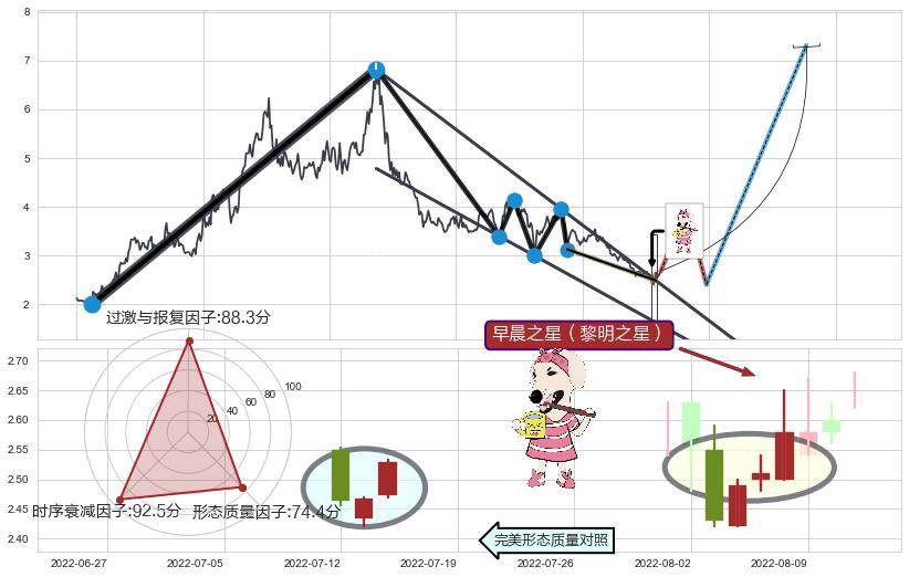 ➢ 【买1】: 激进型 买点 →(2022-08-08: 2.491 )形成突破降🚩楔型【整理】形态