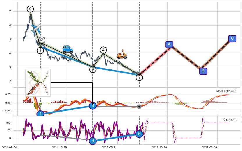 | 3 🅚:上涨两颗星 | 上涨三颗星 ➕ 🌊:波浪理论猜想下跌浪5已形成,猜想后续形成abc反弹上涨(均值回复) ☞ 看多信号 ⇥ 【🅚线】交织【图形】⇥ 综合量化分数: 51 | > |