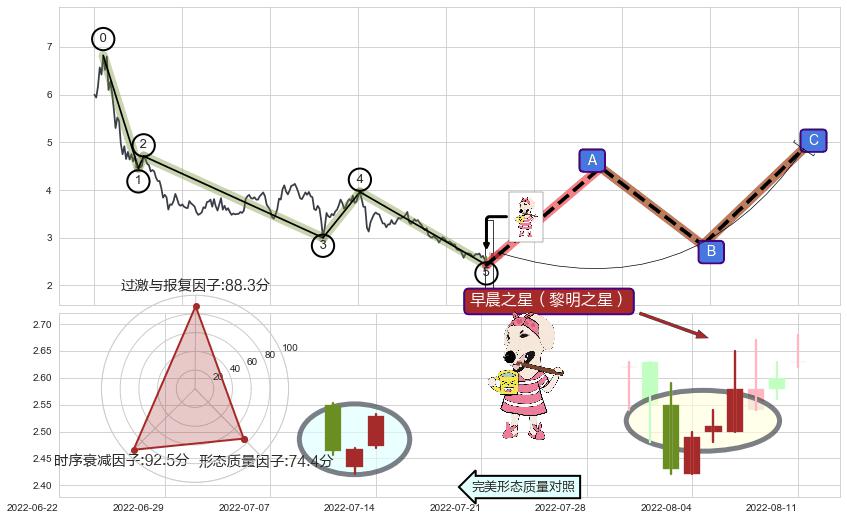 | 5 🅚:曙光初现形态 ➕ 🌊:波浪理论猜想下跌浪5已形成,猜想后续形成abc反弹上涨(均值回复) ☞ 看多信号 ⇥ 【🅚线】交织【图形】⇥ 综合量化分数: 63 | > |