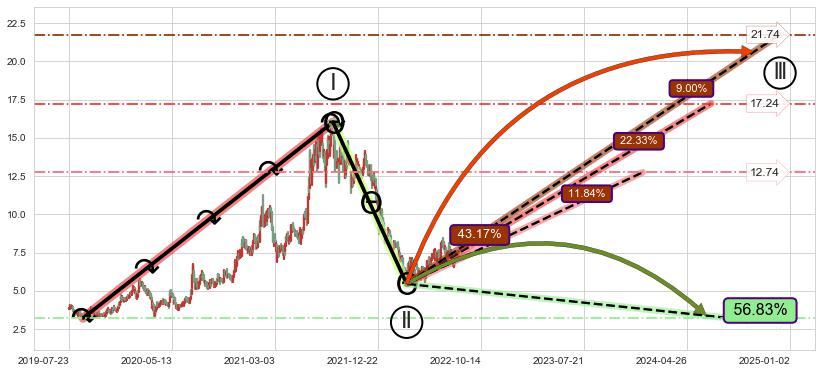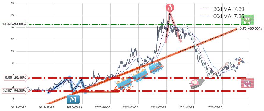 ♘ 阻力价格位14.44,可信任强度63.99%,距离最后交易2022-08-12形成的收盘价格7.42相差 +94.66%