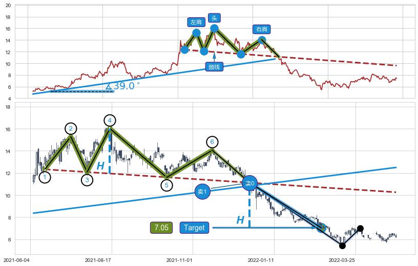 ➣ 【已确认突破】头肩顶 起点:2021-05-13,突破点:2021-12-20,形态共151交易日
