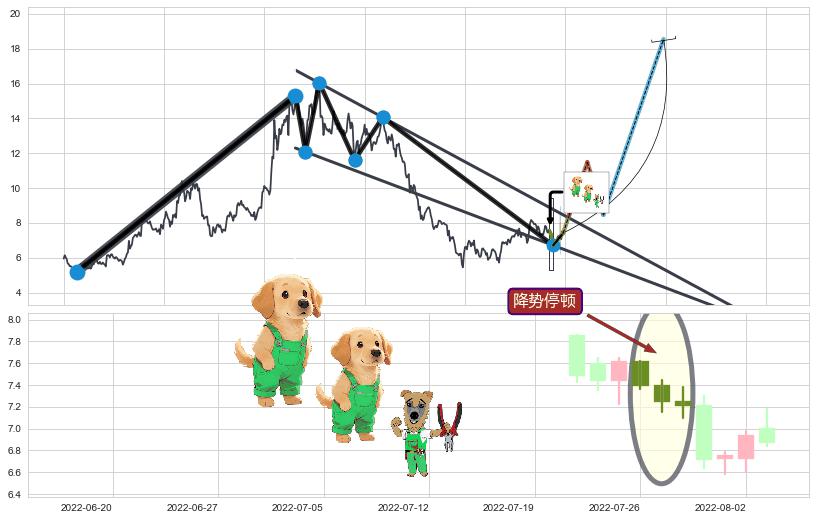 | 8 🅚:锤头线(锤子线) ➕ 📐:降楔型猜想突破点临近,临近关键阻力位,预期拉升突破上涨 ☞ 看多信号 ⇥ 【🅚线】交织【图形】⇥ 综合量化分数: 57 | > |