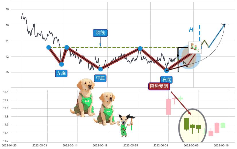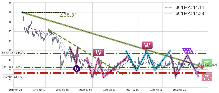 ♘ 在最后的下跌阶段2019-07-24至2022-06-01,存在 持续未破位的阻力位 ,阻力价格11.41,可信任强度86.43%,其距离最后价格10.96相差 +4.06%