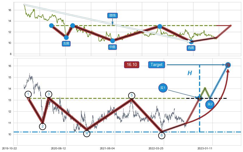 ➢ 图示②④⑥三个波谷均在 13.16 附近成功获得【支撑】→反弹上涨