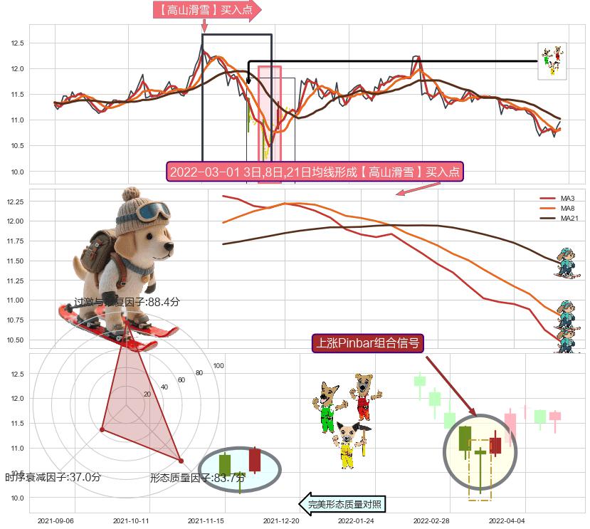 | 3 🅚:锤头线(锤子线) ➕ 🎢:【高山滑雪】买入点均线组合买入点信号形成后,猜想后续下行结束,持续反弹上涨(均值回复) ☞ 看多信号 ⇥ 【均线】交织【🅚线】⇥ 综合量化分数: 52 | > |