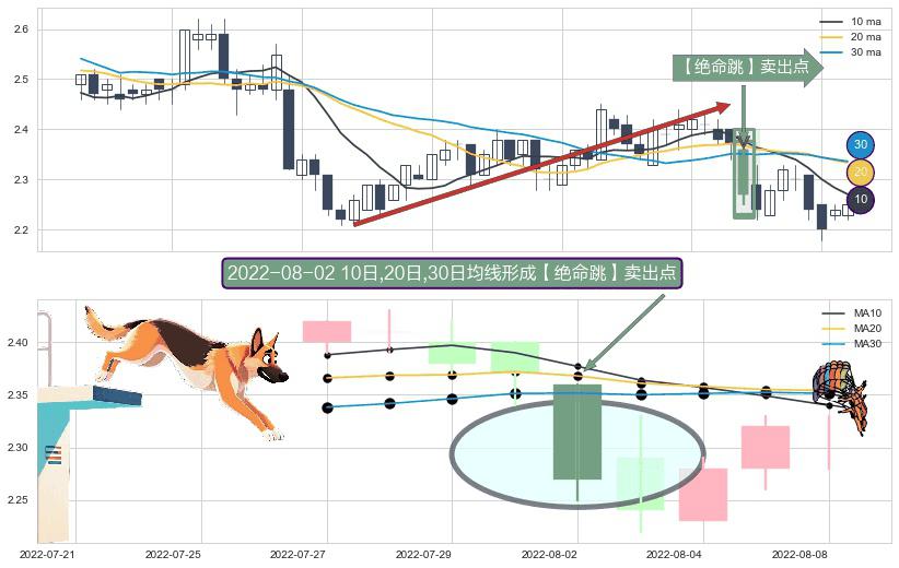 形态多维评估: ⚀ 2022-08-02日显现 10日-20日-30日均线 【绝命跳】卖出点 看空信号,后市看跌,卖出