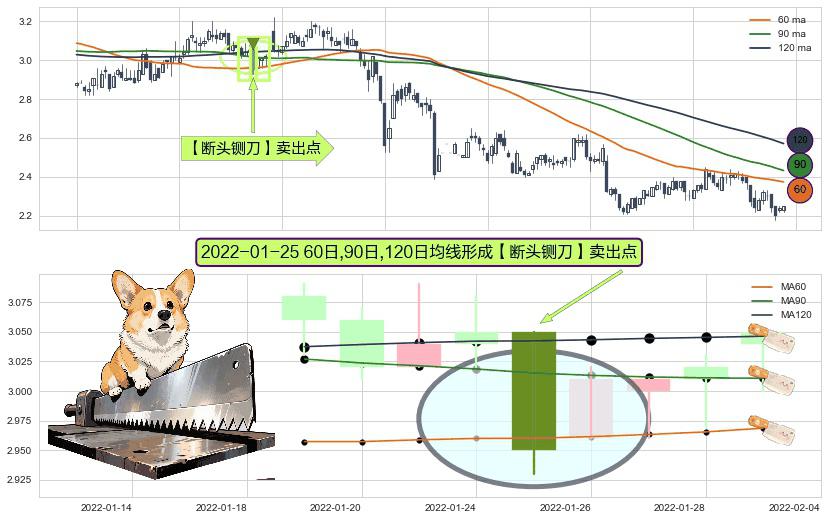 形态多维评估: ⚀ 2022-01-25日显现 60日-90日-120日均线 【断头铡刀】卖出点 看空信号,后市看跌,卖出