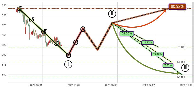 ➢ 5.1: 预测当前第5浪位置(2022-08-10, 2.200),仍然有下跌空间