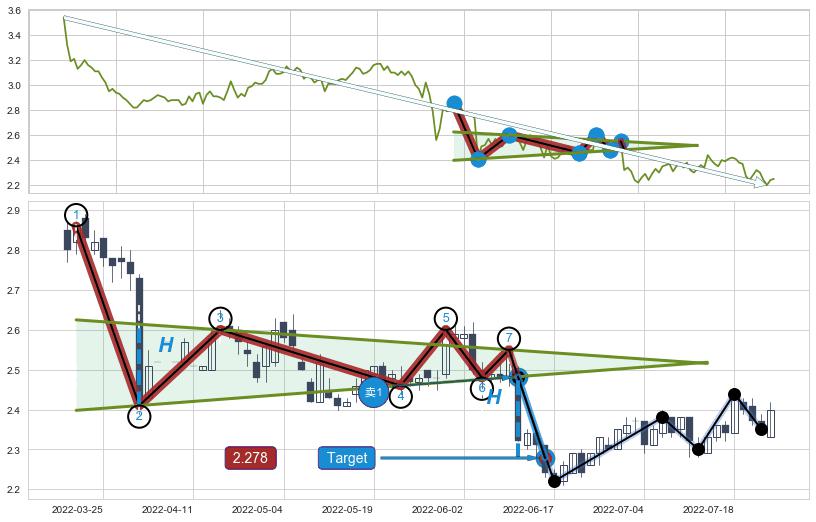 ➣ 【已达成】最小【整理】第一目标价格→(2022-06-16: 2.278 ), 后续继续【整理】下跌动力依然存在,下跌空间适中