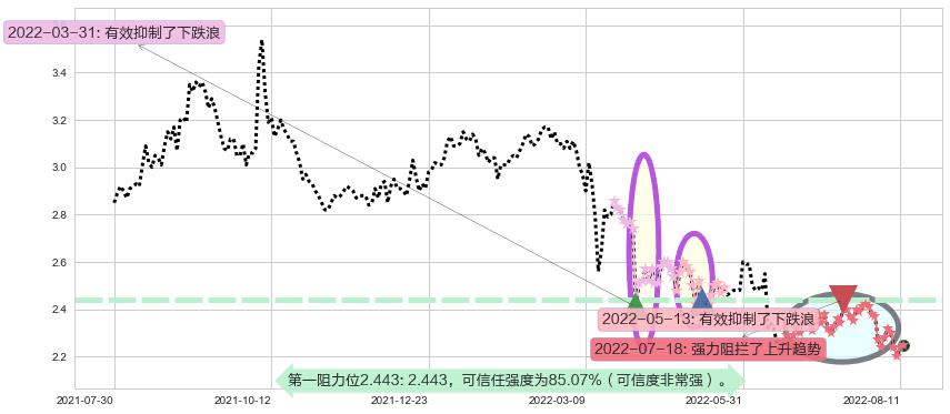 ♘ 阻力价格位2.443,可信任强度85.07%,距离最后交易2022-08-12形成的收盘价格2.250相差 +8.57%