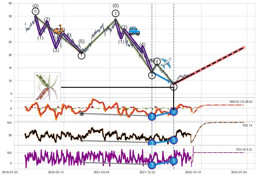 ➣ 1,3,5驱动浪MACD, RSI, KDJ走势都出现【常规背离】反转信号增强