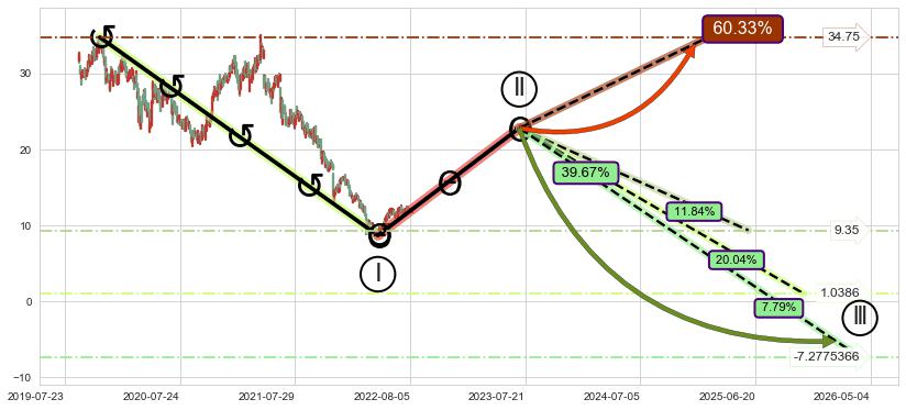 ➢ 高概率大级别循环下跌浪被破坏,反转向上(突破5浪起点)概率60.33%