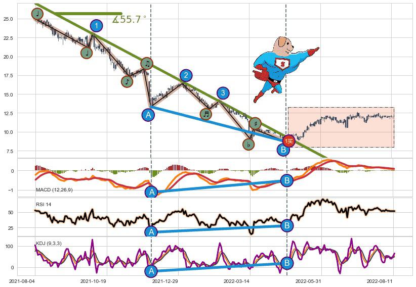 ♘ 支撑价格位9.11,可信任强度73.74%,距离最后交易2022-08-12形成的收盘价格12.00相差 -24.10%