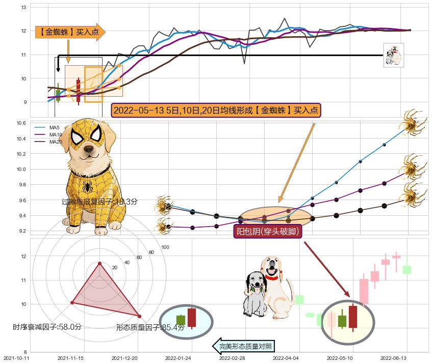 | 3 🅚:【金蜘蛛】买入点 ➕ 📈:趋势线下跌趋势原阻力已出现突破,猜想原阻力已变为支撑位(大周期均值回复) ☞ 看多信号 ⇥ 【均线】交织【图形】⇥ 综合量化分数: 58 | > |
