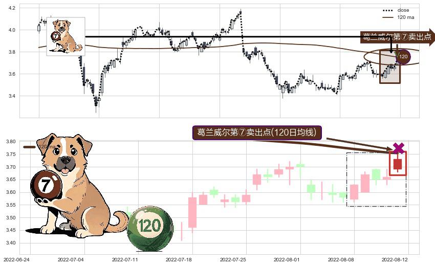 ⚀ 2022-08-12-日显现 葛兰威尔均线 120日均线 第⑦卖出点 下降趋势的中继信号,后市看跌,卖出信号