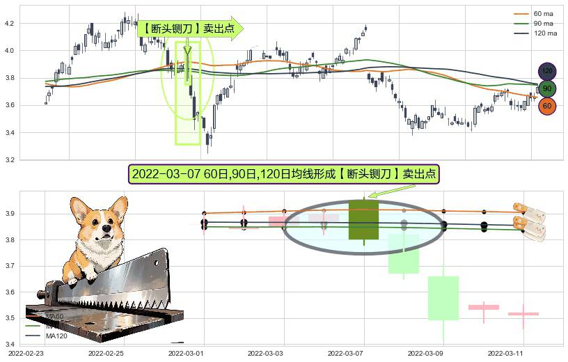 ⚀ 2022-03-07日显现 60日-90日-120日均线 【断头铡刀】卖出点 看空信号,后市看跌,卖出