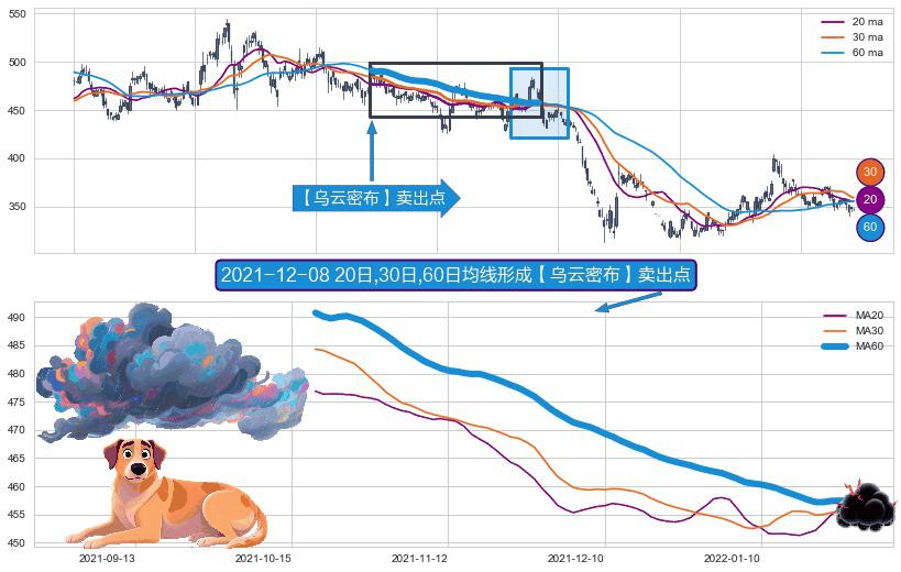 形态多维评估: ⚀ 2021-10-20日-2022-01-26日显现 20日-30日-60日均线 【乌云密布】卖出点 看空信号,后市看跌,卖出