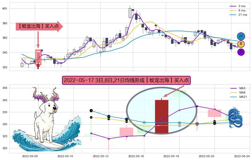 形态多维评估: ⚀ 2022-05-17日显现 3日-8日-21日均线 【蛟龙出海】买入点 看多信号,后市看涨,买入