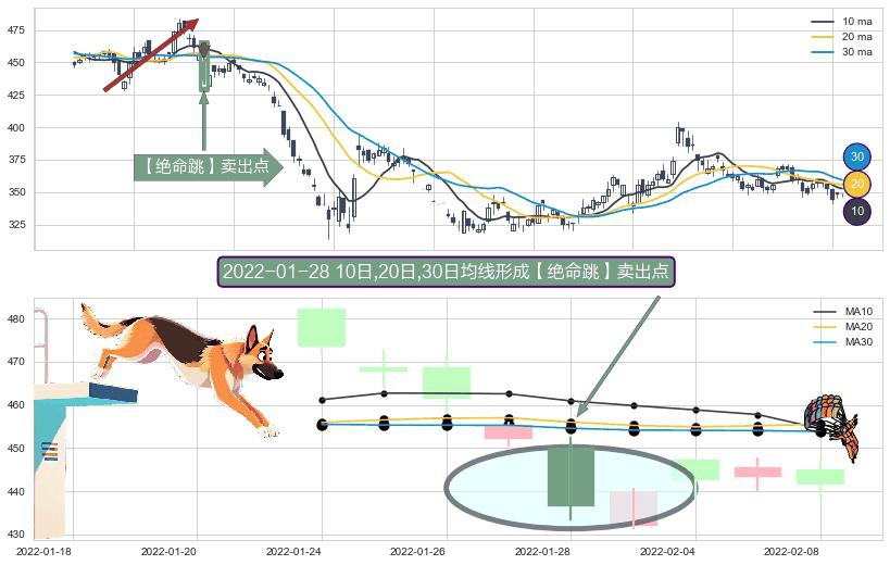 形态多维评估: ⚀ 2022-01-28日显现 10日-20日-30日均线 【绝命跳】卖出点 看空信号,后市看跌,卖出