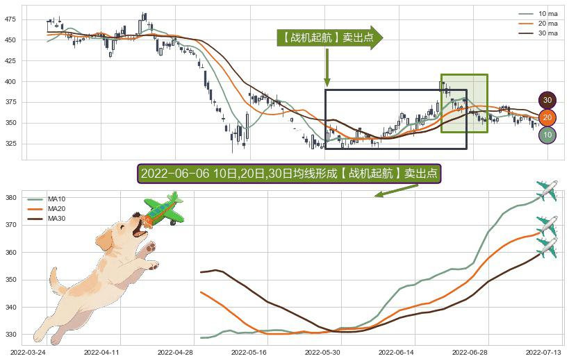 形态多维评估: ⚀ 2022-04-29日-2022-07-08日显现 10日-20日-30日均线 【战机起航】卖出点 看空信号,后市看跌,卖出