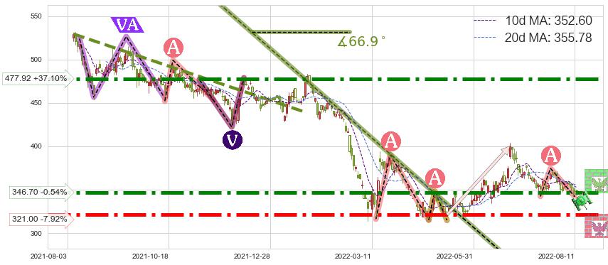 ♘ 阻力价格位346.70,可信任强度86.18%,距离最后交易2022-08-12形成的收盘价格348.60相差 -0.54%