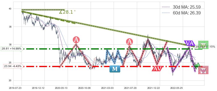♘ 支撑价格位23.94,可信任强度97.09%,距离最后交易2022-08-12形成的收盘价格25.05相差 -4.43%