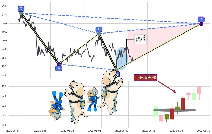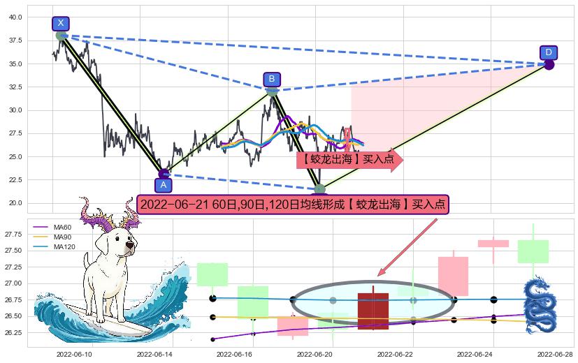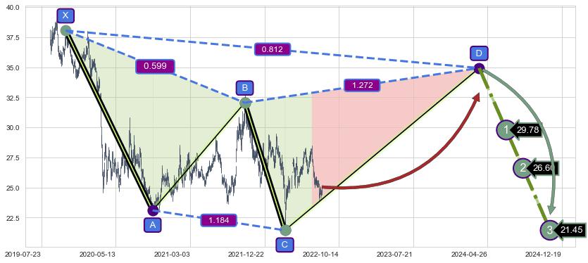 ➣ D点拟合预测价格34.93,距离最后交易收盘价格25.05相差 +39.45%