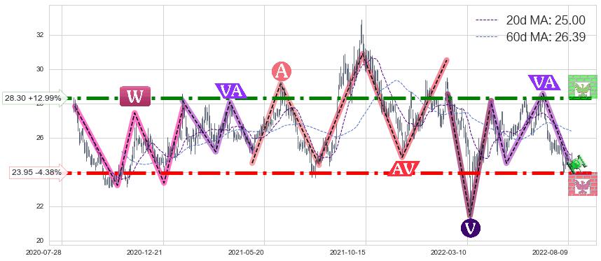 ♘ 阻力价格位28.30,可信任强度97.96%,距离最后交易2022-08-12形成的收盘价格25.05相差 +12.99%