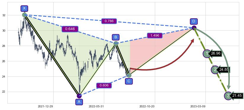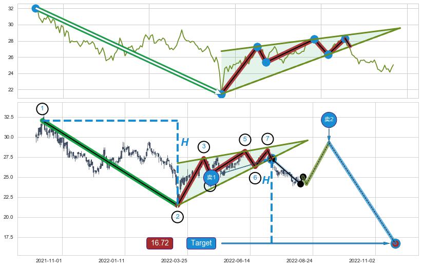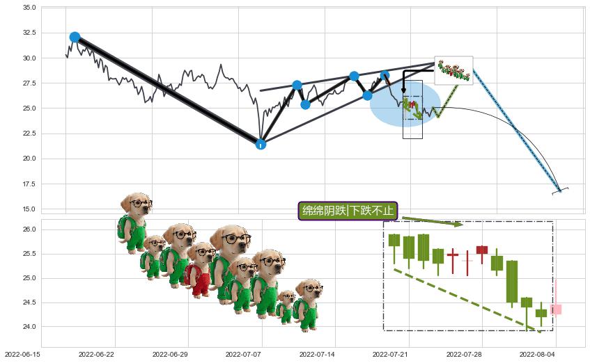 ➣ D点拟合预测价格30.36,距离最后交易收盘价格25.05相差 +21.20%