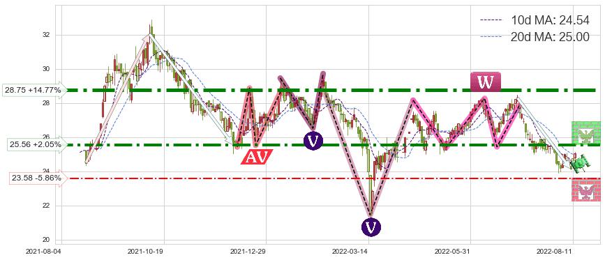 ♘ 阻力价格位25.56,可信任强度79.31%,距离最后交易2022-08-12形成的收盘价格25.05相差 +2.05%