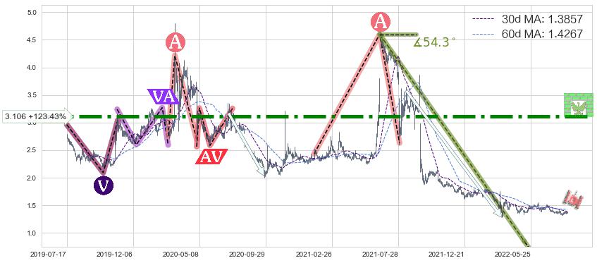 ♘ 阻力价格位3.106,可信任强度94.80%,距离最后交易2022-08-12形成的收盘价格1.3900相差 +123.43%